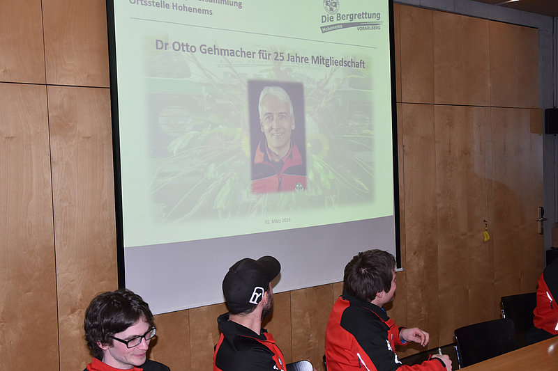 Am Freitag den 02.03.2018 fand im Feuerwehrgerätehaus die 71. Jahreshauptversammlung der Bergrettung Hohenems statt. Ortsstellenleiter Karl-Heinz Fenkart konnte in Anwesenheit zahlreicher Ehrengäste darunter Bgm. Christian Loacker, Götzis und Bgm. Dieter Egger, Hohenems sowie Vertreter der verschiedenen Blaulichtorganisationen und befreundeter Vereine, eine eindrückliche Bilanz des letzten Jahres ziehen.