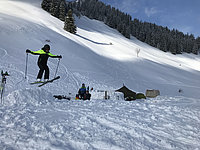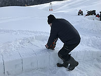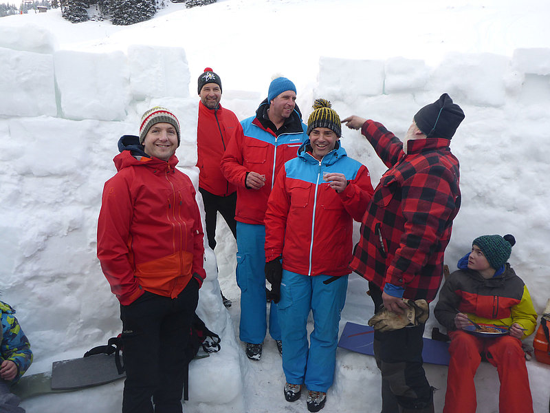 Wann ist das richtige Alter um beim Wintercamp des Alpenvereins Hohenems mitzumachen? Diese Frage wird mir sehr häufig gestellt und ich denke es gibt nur eine Antwort. Das hängt vom Kind aber noch viel mehr vom Vater ab. Heuer war der jüngste Teilnehmer gerademal drei Jahre alt und somit einer der jüngsten Teilnehmer der je dabei gewesen ist. Aber auch lang gediente Wintercamp Kinder die mittlerweile schon junge Erwachsene sind kommen immer wieder zurück und wenn es nur zum Schlafen und essen ist. In Summe durften wir 11 Kinder und 8 Erwachsene beherbergen und dies bei durchwachsenem aber großteils gutem Wetter. Gestartet haben wir auch heuer wieder bereits am Freitag mit dem Aufbau des beheizbaren Zeltes und dem Bau der Schneewände. Da unser Experte für den Hausbau Mario heuer gefehlt hat mussten wir Anlernkräfte diese anspruchsvolle Tätigkeit durchführen. Doch durch die jahrelange Erfahrung haben wir auch diese Herausforderung gemeinsam gemeistert und die Mauern in Rekordzeit hochgezogen. Vielleicht nicht ganz so schön und vielleicht nicht ganz so gerade aber sie haben ihren Dienst getan und das nächste Mal ist Mario ja wieder dabei.