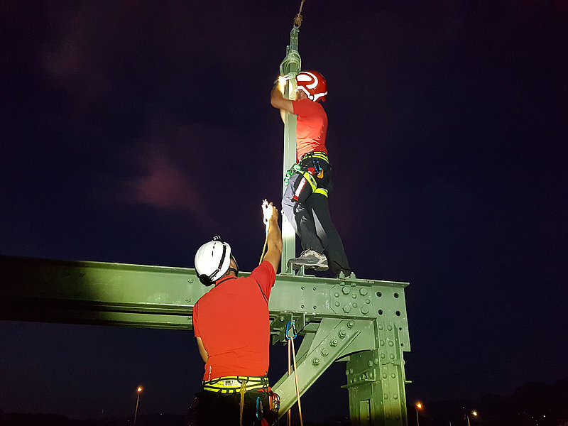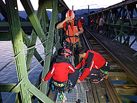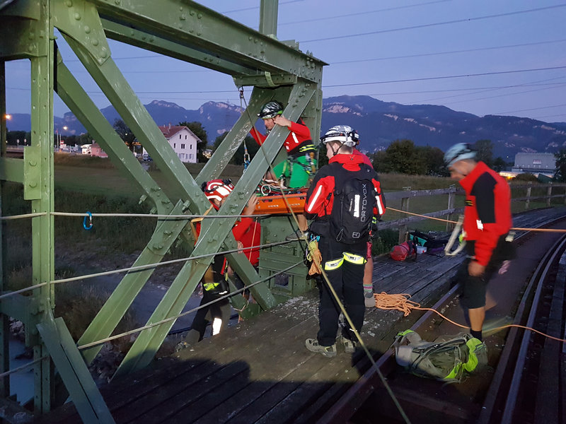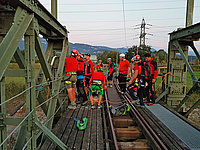 Mit der alten "Rheinbähnle" Brücke in Mäder, auch unser Einsatzgebiet, konnte Übungsleiter Martin Breuss die Mannschaft mit einer besonders "coolen Location" begeistern. "Bergungen von oben" so das Übungsthema konnten mittels Mannschaftszug und Faserseilwinde an dieser stillgelegten Bahnbrücke perfekt geübt werden.
