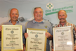 Wo sind die Jahre geblieben? Diese Frage stellen sich viele wenn sie auf ihr Leben zurückschauen. Ich bin mir nahezu sicher, dass auch unsere altgedienten Bergrettungskammeraden sich diese Frage schon gestellt haben. Allerdings bin ich mir ebenso sicher, dass sie darauf auch eine Antwort haben. Denn wer so wie sie jahrelang im Dienste des nächsten aktiv Hilfe geleistet hat, ist oftmals an seine physischen und auch psychischen Grenzen gekommen. Solche Erlebnisse vergisst man nicht. Dennoch sind sie ihrer Berufung bis heute treu geblieben und so durften wir, nicht ohne Stolz, 5 unserer Kammeraden ehren. 40, 50 und sogar 60 Jahre bei einem Verein zu sein ist eine besondere Leistung die hoffentlich viele Nachahmer findet.