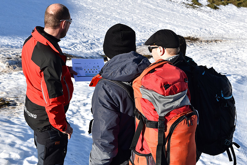 Auch beim diesjährigen LVS-Trainingtag der von "Sicheres Vorarlberg" landesweit organisiert wurde, konnten die zahlreichen interessierten Tourengeher die "Basics" bezüglich dem Umgang mit dem LVS Gerät, Sonde und Schaufel unter fachkundiger Anleitung unserer Bergrettungsmitglieder und Alpinausbilder erfahren und auch üben. Natürlich ersetzt dieser Trainingstag einen fundierten Kurs bezüglich dieser umfangreichen Thematik nicht, dennoch bekommen die Teilnehmer die Grundfertigkeiten in lockerer Atmosphäre vermittelt. Zugleich wird jedoch auch bewusst, daß es bei diesem Thema einer ständigen Übung bedarf um im hoffentlich nie eintretenden Ernstfall sicher zu handeln.