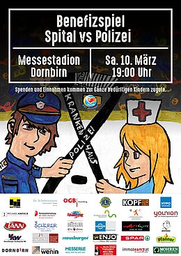 Bald ist es wieder soweit, unser Bergrettungsmitglied Ulli Bachmeier organisiert für eine gute Sache auch heuer wieder den Eishockey Klassiker Bedienstete des Stadtspital Dornbirn gegen Bundespolizei Bezirk Dornbirn. Der Reinerlös der Veranstaltung kommt ausschließlich kranken und bedürftigen Kindern zugute. Neben einem spannenden Match, bei dem auch der Spaß nicht zu kurz kommen wird, gibt es eine große Tombola mit vielen tollen Preisen zu gewinnen. Für das leibliche Wohl ist natürlich wieder bestens gesorgt.