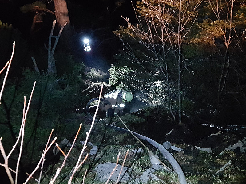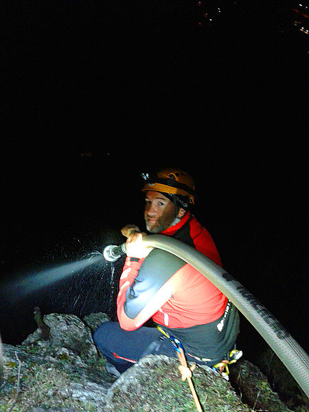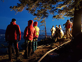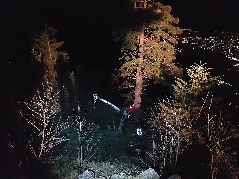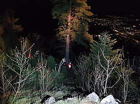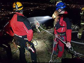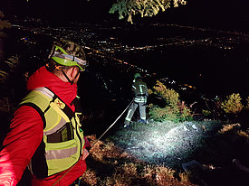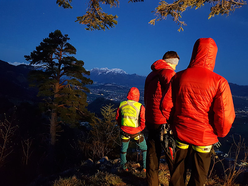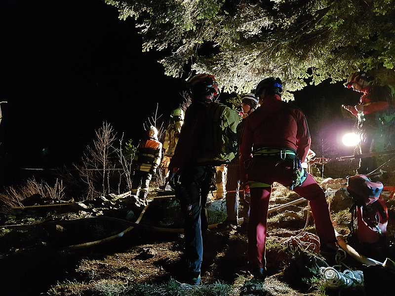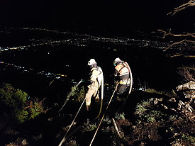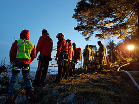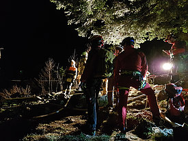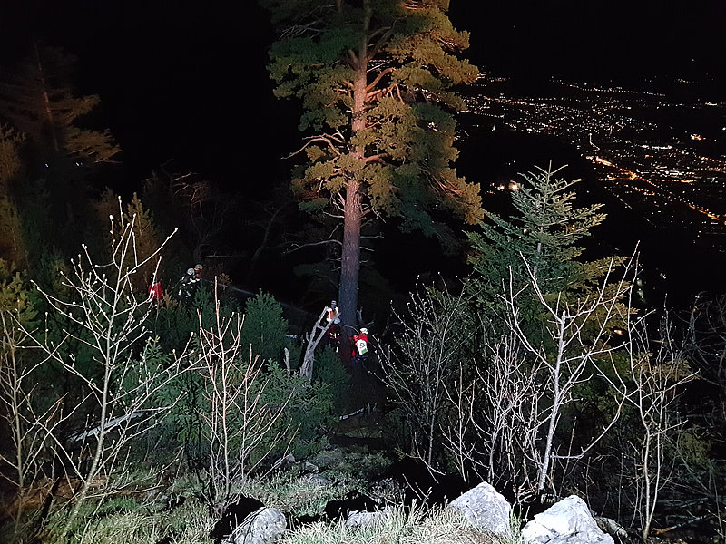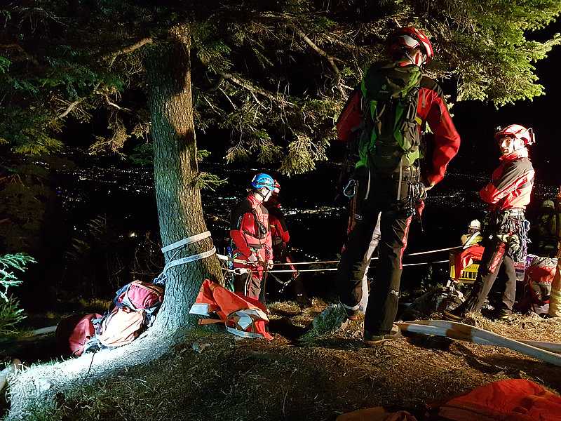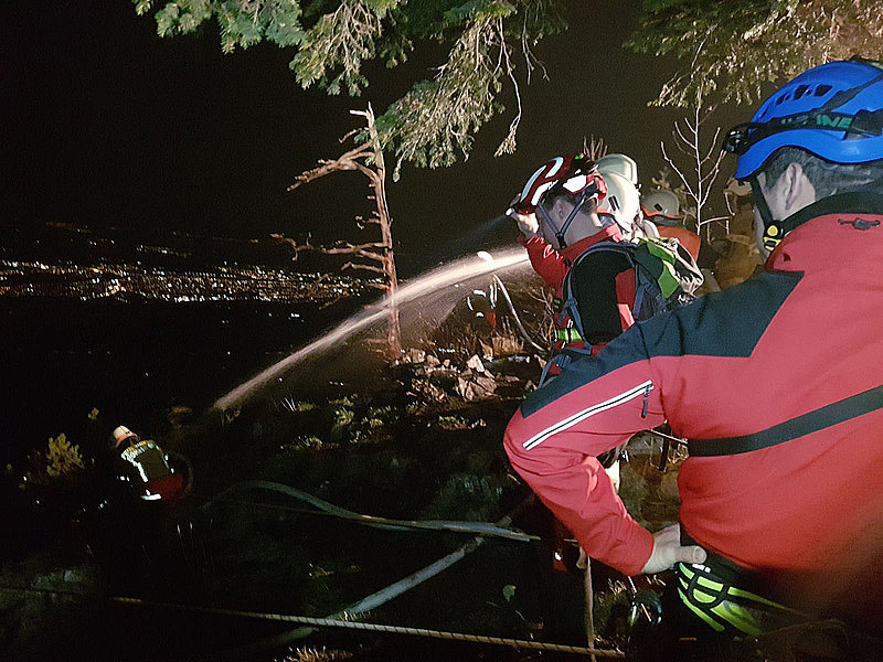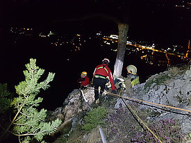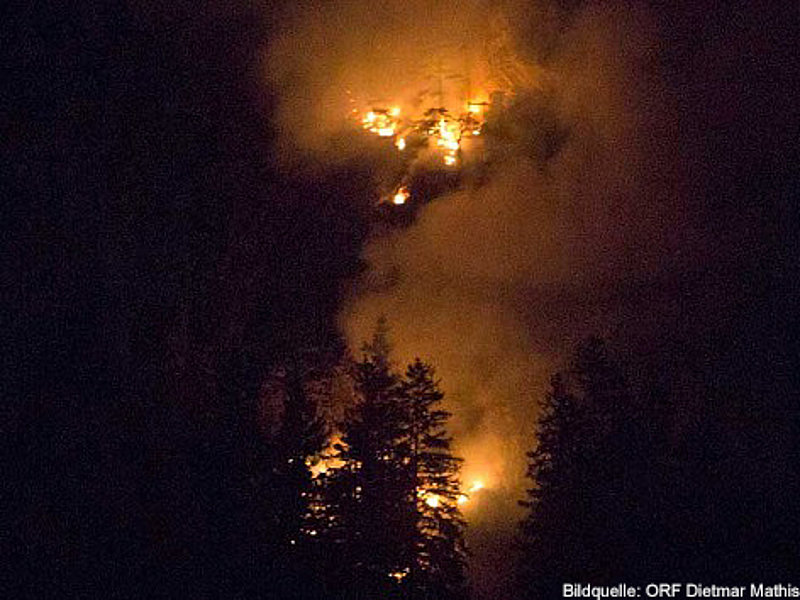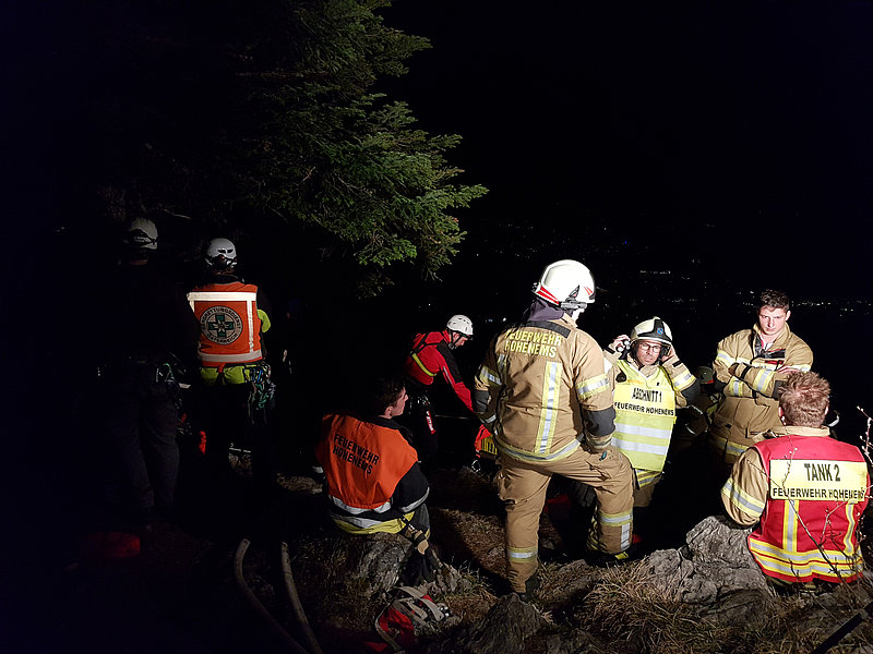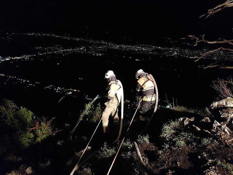 Die Aufgabe der Bergrettung Hohenems bestand bei diesem Einsatz darin, die Kameraden der Feuerwehr mittels Seil zu sichern, damit diese die vielen verstreuten Brandherde in der darunterliegenden Breitenbergwand direkt von der Felskante und zum Teil auch aus der Wand effizient bekämpfen konnten. Die BR-Hohenems war mit 17 Mann bis 2:00 Uhr im Einsatz, danach reduzierten wir die Mannschaft für die Brandwache und kleinere Nachlöscharbeiten während den Morgenstunden auf 4 Mann + 4 Mann Ablöse um 6:00 Uhr bis Brand-Aus.